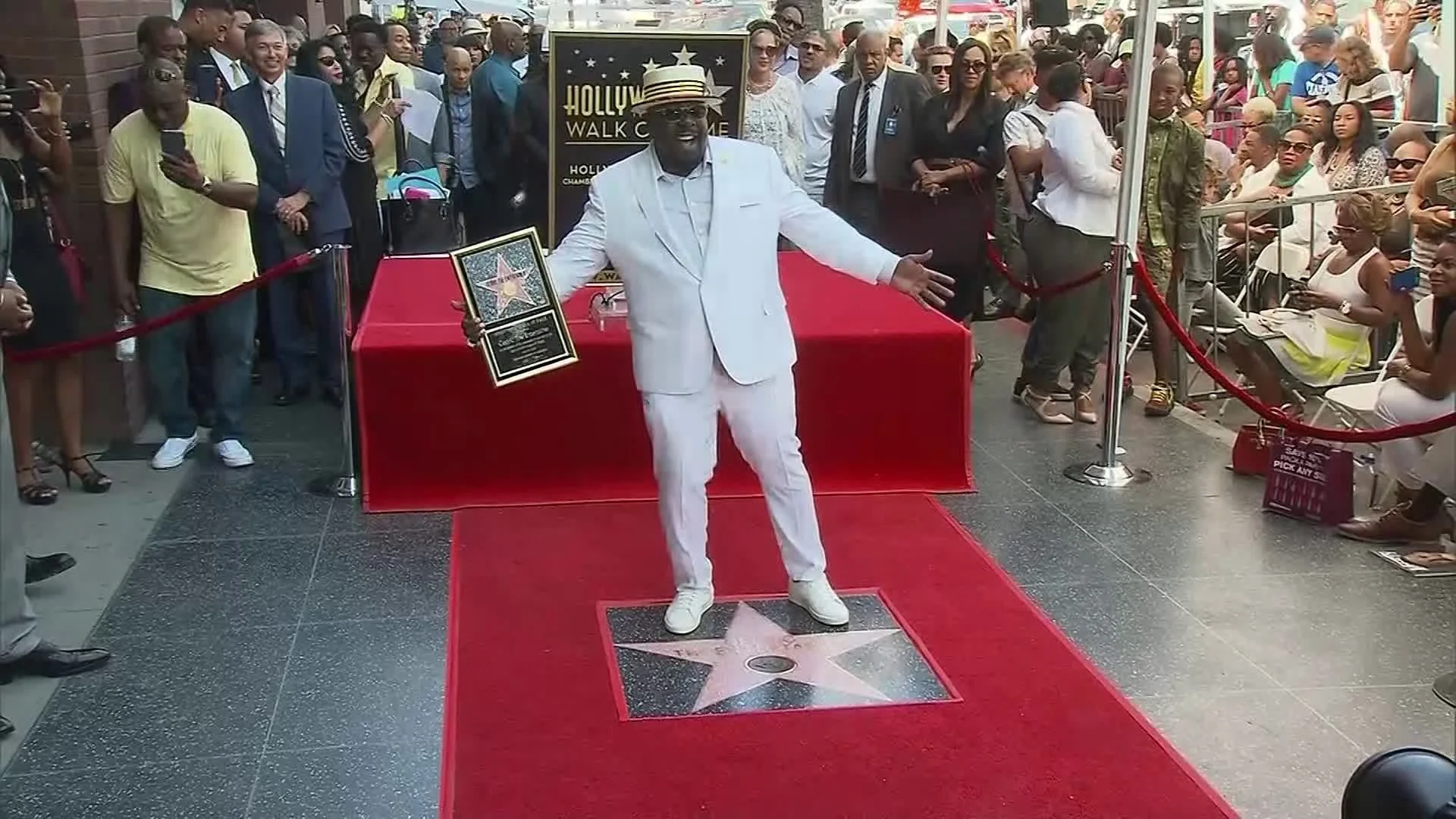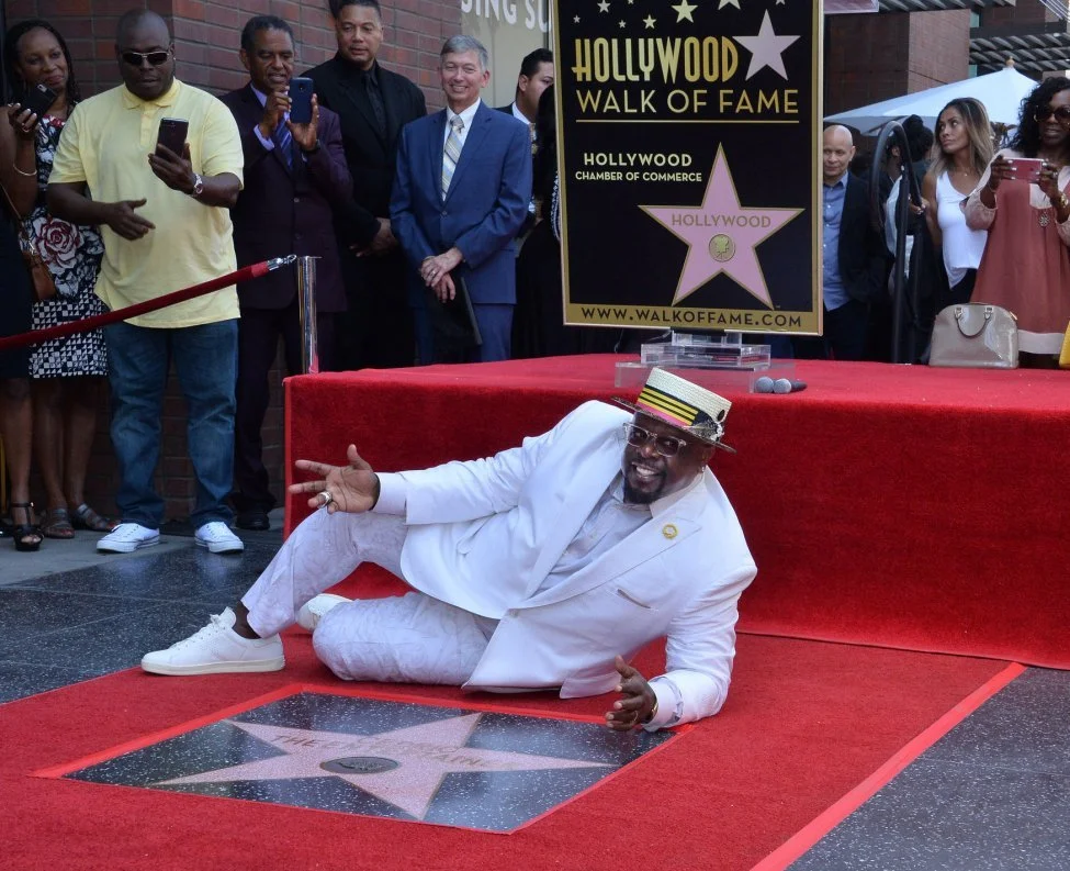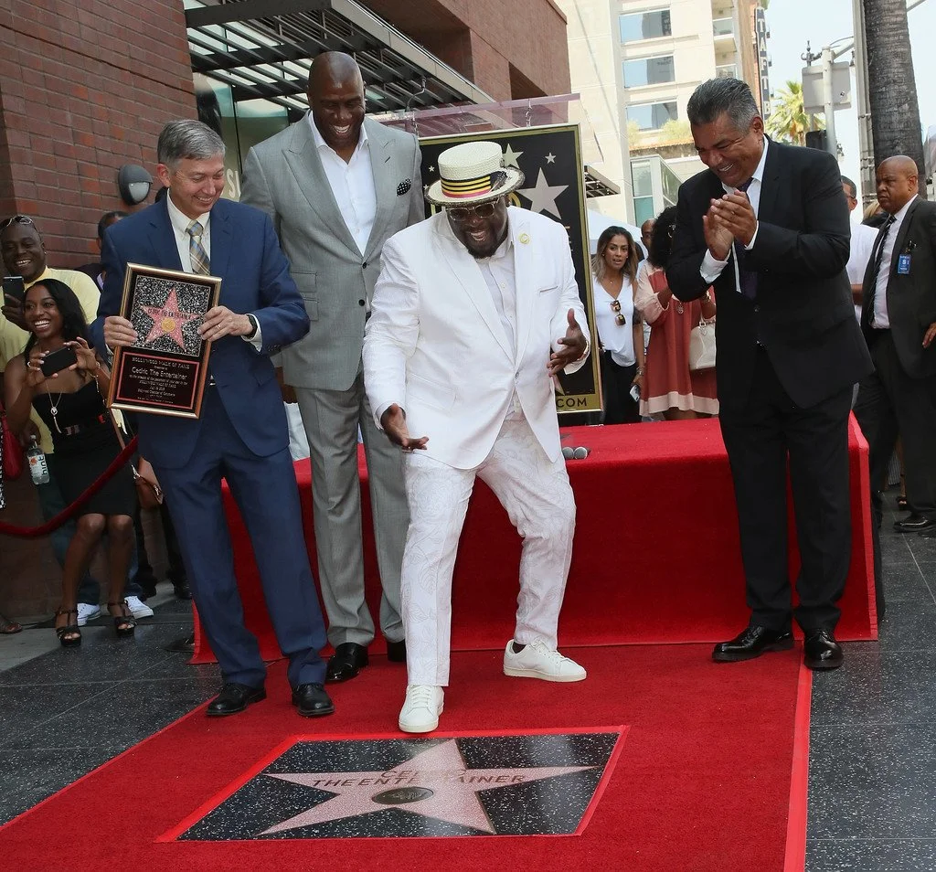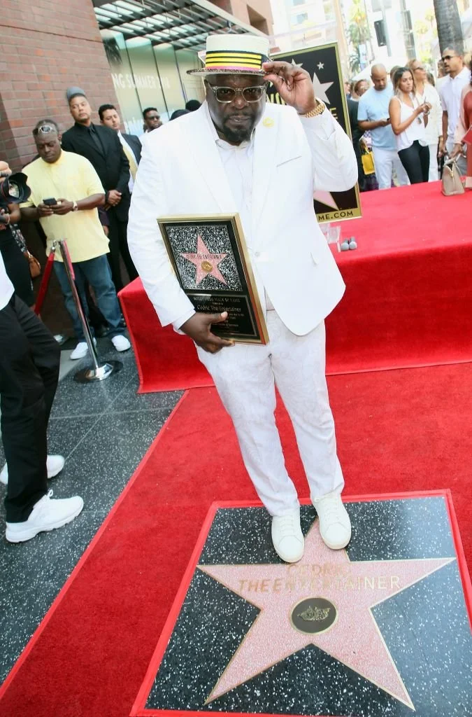 Cedric the EntertainerReceiving his star on the Hollywood walk of fame in a custom suit with printed custom floral pants.